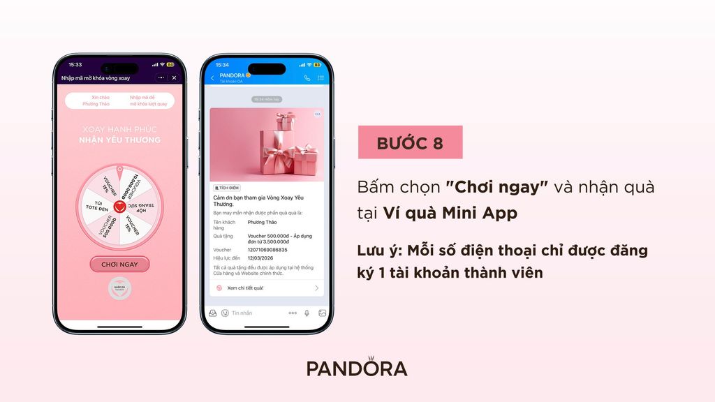 Đăng ký Mini App để nhận ngay 01 lượt chơi Lucky Wheel và cơ hội rinh về hàng loạt quà tặng hấp dẫn từ nhà Pandora